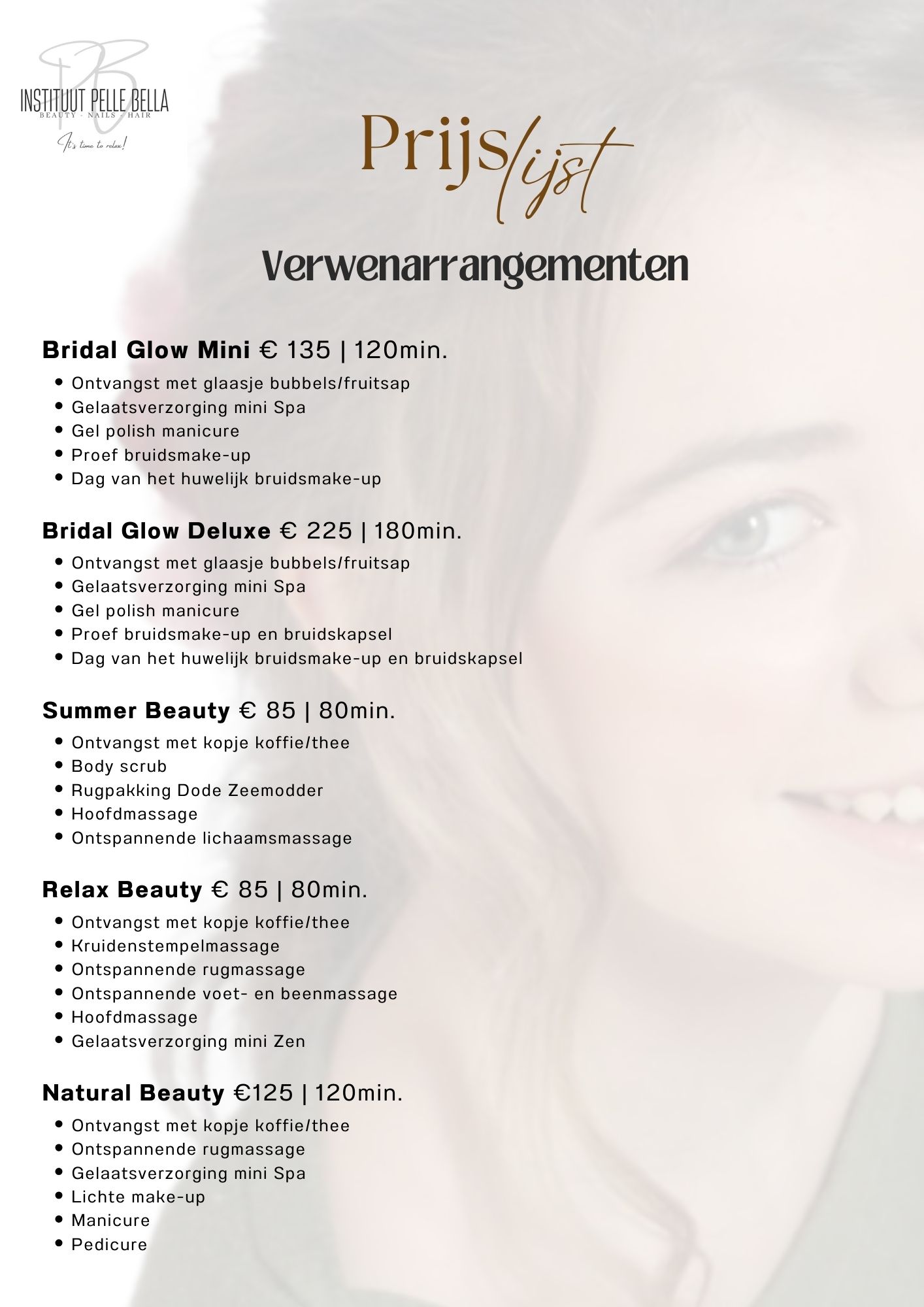 Natural Beauty – €125 | 120 min Ontvangst met koffie of thee, ontspannende rugmassage, gelaatsverzorging Spa mini, lichte make-up, manicure en pedicure