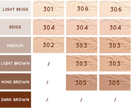 | Compact poeder kleur | 301 Ivory, 302 Pink beige, 303 Apricot beige, 304 Cappuccino, 305 Pink sand, 306 Porcelain |